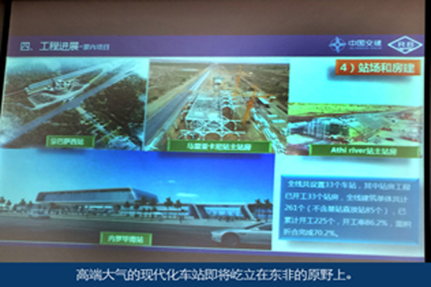 2017年,由中國交建總承包、中國路橋承建的肯尼亞蒙巴薩—內(nèi)羅畢鐵路將通車。屆時(shí),東風(fēng)機(jī)車頭牽引的列車將從非洲巴黎……內(nèi)羅畢啟程,奔向神奇的東非原野,迎著赤道線上的雪峰,跨過人類起源的東非大裂谷,與世界最大的自然野生動物保護(hù)區(qū)王國中的獅群和大象們親密接觸……