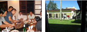 加蓬副總理兼外長(zhǎng)(舉行特別舉行酒會(huì)宴請(qǐng)中方管理人員感謝他們對(duì)加蓬的經(jīng)濟(jì)建設(shè)所作出的貢獻(xiàn)!營(yíng)地的外部環(huán)境,空氣清新,草木蔥蔥。中方管理人員所住的營(yíng)地,食宿條件都不錯(cuò),廚師還是我們四川派的。項(xiàng)目上還聘請(qǐng)了當(dāng)?shù)貑T工,中外員工之間建立了不錯(cuò)的交情,體現(xiàn)了中非的傳統(tǒng)友誼。在異國(guó)他鄉(xiāng)喝著啤酒吃著烤全羊,享受著周末的快樂時(shí)光!