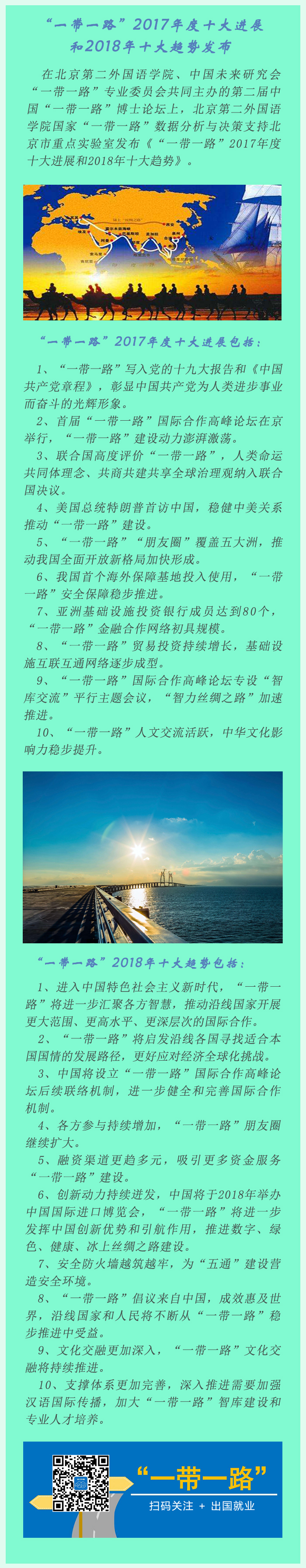 在北京第二外國語學院、中國未來研究會“一帶一路”專業(yè)委員會共同主辦的第二屆中國“一帶一路”博士論壇上,北京第二外國語學院國家“一帶一路”數(shù)據(jù)分析與決策支持北京市重點實驗室發(fā)布《“一帶一路”2017年度十大進展和2018年十大趨勢》。
